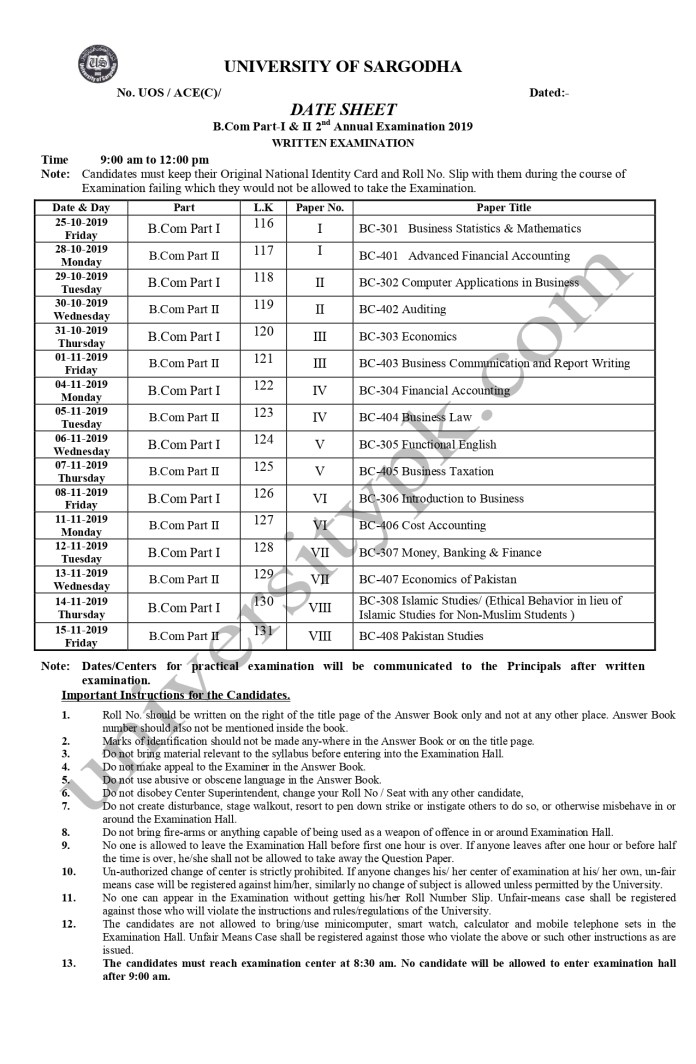 - Un-authorized change of center is strictly prohibited. If anyone changes his/ her center of examination at his/ her own, un-fair means case will be registered against him/her, similarly no change of subject is allowed unless permitted by the University.