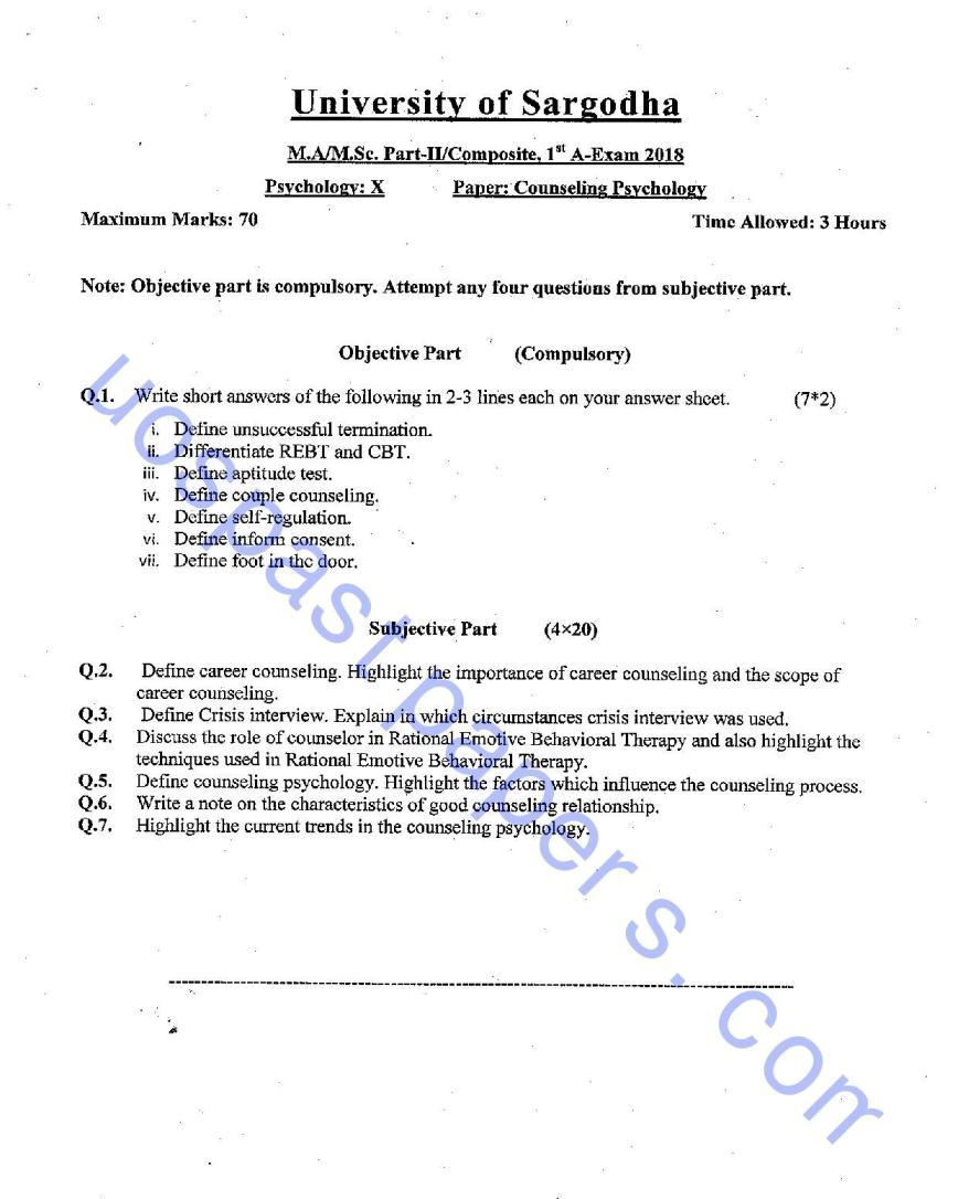X-PSYCHOLOGY MA MSC 1ST 2018 SARGODHA UNIVERSITY
