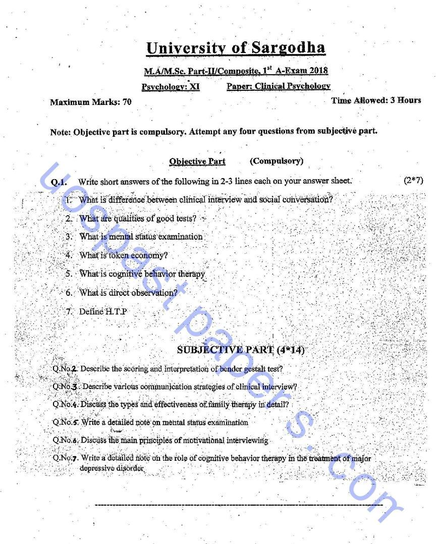 XI-PSYCHOLOGY MA MSC 1ST 2018 SARGODHA UNIVERSITY