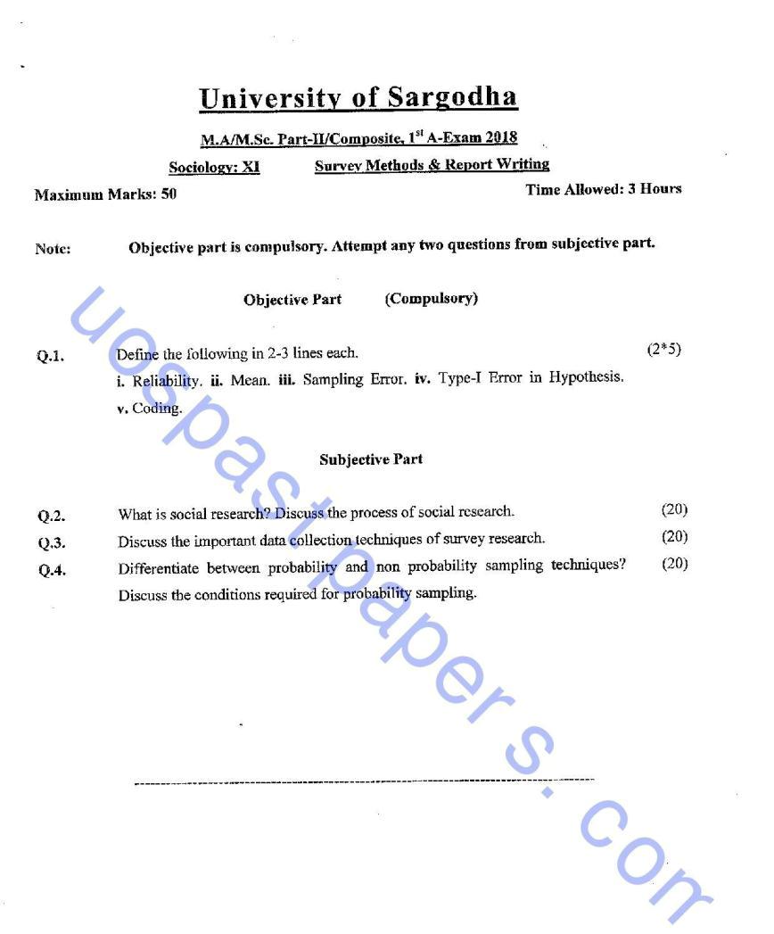XI-SOCIOLOGY MA MSC 1ST 2018 SARGODHA UNIVERSITY