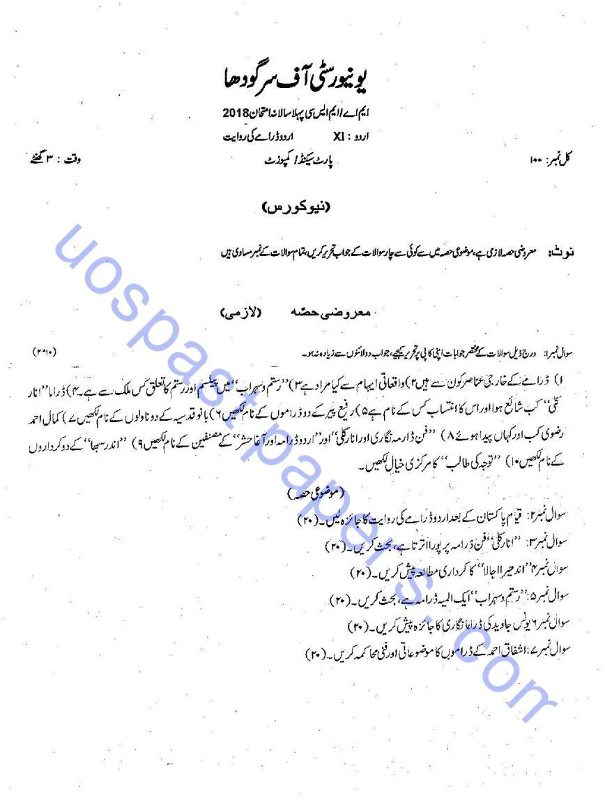 XIURDU MA MSC 1ST 2018 SARGODHA UNIVERSITY