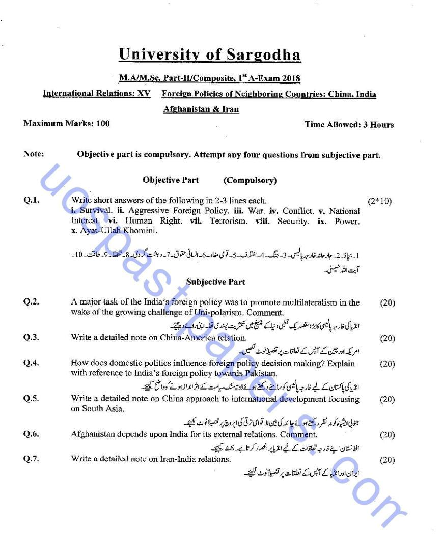XV-IR MA MSC 1ST 2018 SARGODHA UNIVERSITY